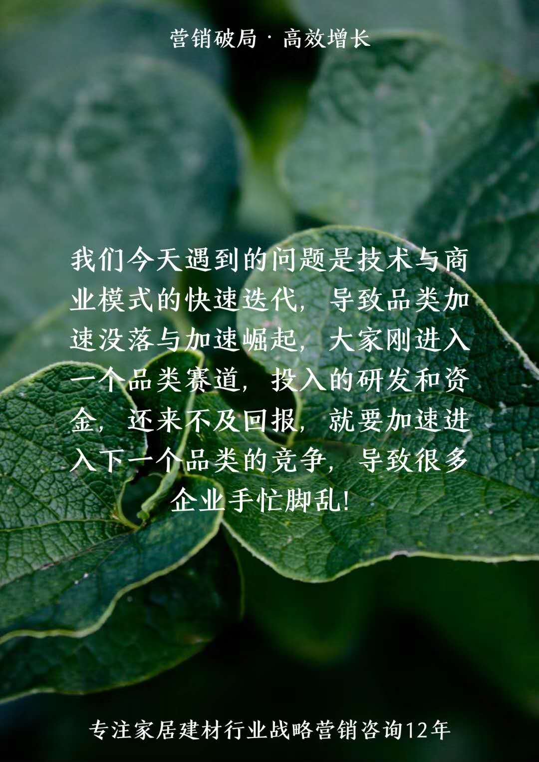 我們今天遇到的問(wèn)題是技術(shù)與商業(yè)模式的快速迭代,導(dǎo)致品類(lèi)加速?zèng)]落與加速崛起,大家剛進(jìn)入一個(gè)品類(lèi)賽道,投入的研發(fā)和資金,還來(lái)不及回報(bào),就要加速進(jìn)入下一個(gè)品類(lèi)的競(jìng)爭(zhēng),導(dǎo)致很多企業(yè)手忙腳亂!