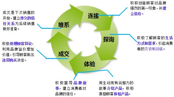 過去,我們的店鋪生意邏輯是依靠“進店量”和成“成交率”,即“流量”和所謂的“銷售技巧”來獲取銷售額,影響銷售額的緯度是“銷售”和“平均價格”。今天,這套銷售模式越來越不靈了,即使選取了好的渠道位置,但發(fā)現(xiàn)“成交率”和“平均價格”上不去。如何去突破傳統(tǒng)零售的困局呢? 傳統(tǒng)零售生意要改變過去依靠”流量“的銷售思維,利用線下門店”強體驗、強關系“的優(yōu)勢,將”流量“客戶轉(zhuǎn)化為“忠誠客戶”,將會員客戶轉(zhuǎn)化為Fans,并讓Fans口口相傳,成為業(yè)績的終身貢獻者。我們如何在終端門店留住我們的客戶呢?為我們的客戶創(chuàng)造“愉悅和驚喜”的購物體驗呢?讓我們的客戶再次光顧并成為Fans呢? 好的顧客體驗是區(qū)別于競爭對手的軟實力,好的顧客體驗自然會帶來“流量”,再將“流量”客戶轉(zhuǎn)化為Fans。通過與Fans的互動,更加強化了與客戶建立持久的客情關系。 傳統(tǒng)零售店鋪如何轉(zhuǎn)變? 一般而言,店面形象、貨品、空間等都是公司總部統(tǒng)一設計和開發(fā)的,終端店鋪很難改變,人員形象、環(huán)境衛(wèi)生、溫度也是總部統(tǒng)一制訂的標準,唯有“終端服務”這一項彈性空間很大,很難標準化。今天在這里我們重點探討“終端服務”。我們對標全球零售體驗標準,并從上千家通訊、服裝、珠寶鐘表終端門店成功經(jīng)驗基礎上總結(jié)出提升客戶體驗、與客戶建立持久關系的方法論:五步十字法--體驗式銷售流程。(如下圖) 終端銷售不是簡單的幫客戶買東西,而是在滿足顧客需求的過程中,為顧客創(chuàng)造“愉悅”和“驚喜”的購物感受。我們倡導銷售要基于顧客立場,要基于顧客購買流程來設計銷售流程。銷售首先要解決的問題是“信任”,這就要求導購掌握“連接”的技巧,快速與顧客建立信任,形成對品牌的第一印象。 緊接著要探詢顧客的需求,客戶需要的不是一把錘子,也不是一個釘子,而是要把衣服掛起來。當顧客說要買一個戒指時,導購如果只是一味的推薦戒指,并沒有滿足顧客的需求。在這里要區(qū)分一個概念:用戶和客戶的區(qū)別,如果是自己戴,顧客就是用戶,如果是送人,收禮的那個人就是用戶。導購應該探詢用戶的喜歡、風格和用途,如果盲目的推銷不僅不能滿足顧客的需求,反而會影響最終成交。 掌握了用戶的需求后,一定要積極引導顧客引戴/穿,體驗產(chǎn)品帶給顧客的美妙感覺,導購要善于為顧客描繪一個有吸引力的場景,讓顧客幻想未來在某個特定的場景下的狀況。聰明的導購一般會善用人的左、右大腦的功能,先預設一個美妙的場景或故事,再通過輔助工具不斷驗證,最后再以美妙的故事結(jié)束體驗。 當顧客還沉浸在美妙的場景中時,導購要積極主動促成顧客成交。成交是一個過程,不是一個結(jié)果。如果“連接”、“探詢”、“體驗”讓客戶感覺良好,導購可以輕易解除顧客異議,并順利成交。 “成交”不是銷售的結(jié)束,而是新的銷售的“開始”。常規(guī)的客戶維系為什么會失敗呢?我認為做好客戶維系至少需要做好這兩點: 1、以客戶為中心:常規(guī)的客戶維系的出發(fā)點是站在銷售的立場,目的性太明顯,沒有把握住客戶的需求。從關心顧客的角度出發(fā),更容易獲得顧客的認可和支持。 2、與客戶充分互動:等到需要顧客支持的時候才想起顧客的維系,會讓顧客感覺不好,只有充分了解顧客的生活方式,功課做在平時,與顧客建立良性的互動關系,顧客才會變成你的Fans。 總之,客戶維系不是一時之功,功在平時,功在積累,功在用心。細節(jié)決定成敗,做好零售運營,一切盡在細節(jié)。 |