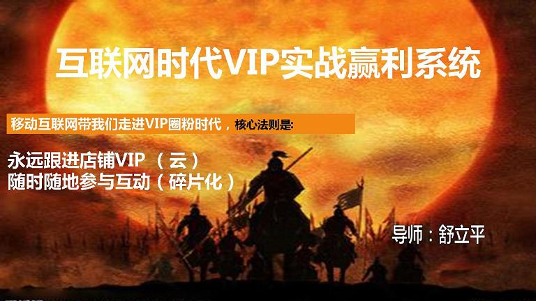 大家好! 很高興與各位優(yōu)秀的企業(yè)家及各位老師進行交流,上面的這張圖,是我今年一個顛覆型的公開課,這是PPT的首頁《互聯(lián)網(wǎng)時代VIP實戰(zhàn)贏利系統(tǒng)》,一個課題。 大家都知道,一個品牌店鋪業(yè)績的倍增靠的是老顧客,移動互聯(lián)時代粉絲與屌絲決定了你店鋪的生存與發(fā)展。 我今天要和大家探討的是:如何運用你的手機優(yōu)化管理你的用戶,讓你的店鋪火山爆發(fā)式的增長VIP客戶;讓你的VIP客戶持續(xù)不斷的拉升店鋪業(yè)績;讓你比你的競爭對手擁有跟多的店鋪進店率;讓你學會店鋪業(yè)績增長至少三倍的VIP方法。 因時間太短,只能和大家分享一個點,再從這個點延伸到整個面。 互聯(lián)網(wǎng)是一個生態(tài)體系,是一個大數(shù)據(jù),是一個大計算的時代,它即將回歸人的本質(zhì)。 他是一個增量的生態(tài)體系,它不遵從你原來的游戲規(guī)則,今天6億臺的PC,今天7億臺的智能手機,中國1500萬的服務器,你不跟它去迎合,你只能出局。 記住線上線下是你的核心,我指的線上線下是從廣義上來講的,移動互聯(lián)營銷就是把你的店鋪開到客戶的手機里,領(lǐng)先你的同行建立微電商系統(tǒng),你如何在手機里鎖定你的客戶。 移動互聯(lián)營銷就是把你的手機改變成現(xiàn)金收割機,客戶渾身都是寶、一旦進來千萬不讓跑。 經(jīng)營粉絲在于互動,沒有互動,你的客戶是僵尸,久了之后會變成干尸和死尸。 如果你要去發(fā)現(xiàn)未來,就自己親手去創(chuàng)造未來,才能獲取未來的一種商業(yè)場景。