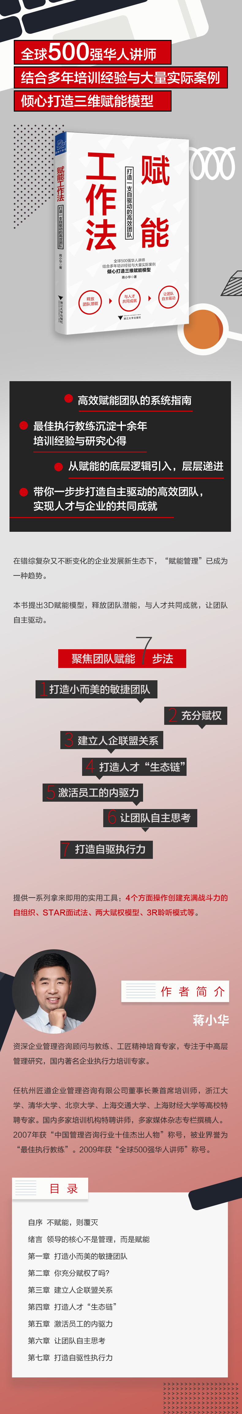 我曾問(wèn)過(guò)無(wú)數(shù)的團(tuán)隊(duì)管理者,他們管理中的最大痛點(diǎn)是什么?結(jié)果收到的回答中最多的是,企業(yè)缺少優(yōu)秀的人才,員工缺乏足夠的能力和動(dòng)力。 情況真是這樣嗎?我通過(guò)10 多年的企業(yè)管理研究和實(shí)踐,驚訝地發(fā)現(xiàn),企業(yè)并不是缺人才,而是缺乏管理人才的賦能力;員工也不是缺能力,而是缺乏釋放能力的驅(qū)動(dòng)力。 正如任正非說(shuō),企業(yè)的核心競(jìng)爭(zhēng)力不是人才,而是管理人才的能力。任正非所說(shuō)的人才管理能力,其本質(zhì)就是對(duì)人才賦能。尤其是在不確定性因素很多的今天,這一點(diǎn)尤為明顯,甚至可以毫不夸張地說(shuō),“不賦能,則覆滅”。 阿里巴巴集團(tuán)學(xué)術(shù)委員會(huì)主席、湖畔大學(xué)教育長(zhǎng)曾鳴也指出,未來(lái)企業(yè)的核心功能不是管理,而是賦能。在錯(cuò)綜復(fù)雜的社會(huì)環(huán)境下,企業(yè)管理的關(guān)鍵已從控制命令式轉(zhuǎn)變?yōu)橘x能分布式。 何謂賦能?賦是賦予,能是權(quán)力、能力和動(dòng)力,連起來(lái)就是賦予團(tuán)隊(duì)權(quán)力、動(dòng)力和能力,讓團(tuán)隊(duì)自主決策和自主驅(qū)動(dòng)。很多時(shí)候,企業(yè)一著慢,滿盤輸。正如普希爾定律所說(shuō):再好的決策也經(jīng)不起拖延。只有懂得賦能的組織或個(gè)人,才可能擁有強(qiáng)大的、能快速反應(yīng)的團(tuán)隊(duì)。 賦能的概念起源于20 世紀(jì)20 年代,提出者是被德魯克稱為“管理學(xué)的先知”,人稱“管理理論之母”的現(xiàn)代管理學(xué)理論預(yù)言家瑪麗·帕克·福萊特。她嚴(yán)厲地批判了等級(jí)森嚴(yán)的企業(yè)組織結(jié)構(gòu),非常反對(duì)“命令與控制”型的管理作風(fēng),倡導(dǎo)民主的管理方式,認(rèn)為決策時(shí)應(yīng)充分考慮基層員工的經(jīng)驗(yàn)和知識(shí)。 那時(shí)候,賦能對(duì)個(gè)體而言更多的是一種激勵(lì),但激勵(lì)應(yīng)視作賦能在工業(yè)時(shí)代的前身,而賦能在信息時(shí)代是對(duì)激勵(lì)的升級(jí)和優(yōu)化,是激發(fā)員工的潛能,讓團(tuán)隊(duì)自主決策,以應(yīng)對(duì)外界的變化,且讓團(tuán)隊(duì)自我驅(qū)動(dòng),打造敏捷團(tuán)隊(duì)的最好的良方。 另外,賦能是要“創(chuàng)造”更多優(yōu)秀的人才,與人才共同成就。賦能領(lǐng)導(dǎo)者總是把精力投入到如何提取與延伸他人的才能之中,他們不炫耀自己的智力,不滿足于眼前的利益,而關(guān)注長(zhǎng)遠(yuǎn)的發(fā)展。也就是說(shuō),他們從員工那里得到的比員工自己知道的還要多。 研究發(fā)現(xiàn),一般的領(lǐng)導(dǎo)者,只能讓員工發(fā)揮20%~50% 的能力,而賦能領(lǐng)導(dǎo)者通常能讓員工發(fā)揮70%~100% 的能力,這兩者相差約2倍。如果我們能得到現(xiàn)在團(tuán)隊(duì)雙倍的才能,那么還有什么做不到的目標(biāo)呢? 為什么賦能領(lǐng)導(dǎo)者可以挖掘出員工更多的能力?因?yàn)樗麄兿嘈艈T工很聰明,有能力解決問(wèn)題,而且他們相信員工可以在更高的水平上做出貢獻(xiàn)。他們會(huì)不斷地問(wèn)自己:這個(gè)人的優(yōu)點(diǎn)是什么?我可以做些什么能更好地發(fā)揮他的優(yōu)點(diǎn)呢? 《高效能人士的七個(gè)習(xí)慣》一書的作者史蒂芬·柯維說(shuō):“如果每一位領(lǐng)導(dǎo)者都從限制團(tuán)隊(duì)發(fā)展的領(lǐng)導(dǎo)向賦能領(lǐng)導(dǎo)者邁進(jìn)一步,社會(huì)將會(huì)如何變化呢?”目前,企業(yè)內(nèi)部有許多沒(méi)有挖掘的人力資源,相反還削弱了員工的智慧。 為此,我進(jìn)行了深入的探索和研究,試著整理出一個(gè)框架和體系,給讀者,特別是給從事團(tuán)隊(duì)工作的領(lǐng)導(dǎo)們提供一套“地圖”。 本書的緒言部分,主要闡述從傳統(tǒng)管理到領(lǐng)導(dǎo)賦能的思維轉(zhuǎn)變,并構(gòu)建釋放團(tuán)隊(duì)潛能、與人才共同成就和讓團(tuán)隊(duì)自主驅(qū)動(dòng)的三維賦能模型。全書共分3 部分進(jìn)行系統(tǒng)闡述。 第一部分,主要闡述如何解放團(tuán)隊(duì)束縛,釋放團(tuán)隊(duì)潛能。一是從組織架構(gòu)上加以精簡(jiǎn)和扁平化,并創(chuàng)造協(xié)同文化;二是從有效賦權(quán)的角度,放權(quán)釋能,從而打造一支小而美的敏捷團(tuán)隊(duì)。 第二部分,主要闡述如何讓團(tuán)隊(duì)與人才共同成就。該部分通過(guò)重新定義人與企業(yè)的關(guān)系、找到合適的人才、創(chuàng)造人才最大合力、穩(wěn)固聯(lián)盟關(guān)系、培養(yǎng)和打造卓越人才等,構(gòu)建相互成就的人才生態(tài)鏈。 第三部分,主要闡述如何讓團(tuán)隊(duì)自主驅(qū)動(dòng)。該部分分別從激發(fā)團(tuán)隊(duì)的內(nèi)驅(qū)力、讓團(tuán)隊(duì)自主思考和打造自驅(qū)性執(zhí)行力的角度,提煉一套團(tuán)隊(duì)自驅(qū)體系。 可以說(shuō),這是一本關(guān)于團(tuán)隊(duì)賦能比較成體系的書,希望本書能給讀者梳理出賦能的框架和行動(dòng)攻略,從而可以輕松地打造出一支自驅(qū)動(dòng)的敏捷團(tuán)隊(duì)。