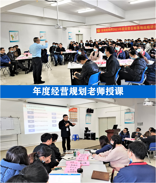 年度經(jīng)營規(guī)劃會第一天早上8點(diǎn),深圳結(jié)構(gòu)件公司總經(jīng)理回顧了2020年內(nèi)外部環(huán)境對公司的影響,指出了2021年公司經(jīng)營管理需要突破的重點(diǎn)。 年度經(jīng)營規(guī)劃會第一天上午,財(cái)智菁英咨詢老師講授了《年度經(jīng)營規(guī)劃》,重點(diǎn)剖析了年度經(jīng)營目標(biāo)與年度經(jīng)營計(jì)劃的制定,并著重強(qiáng)調(diào)了年度經(jīng)營目標(biāo)與年度經(jīng)營計(jì)劃如何高效達(dá)成。