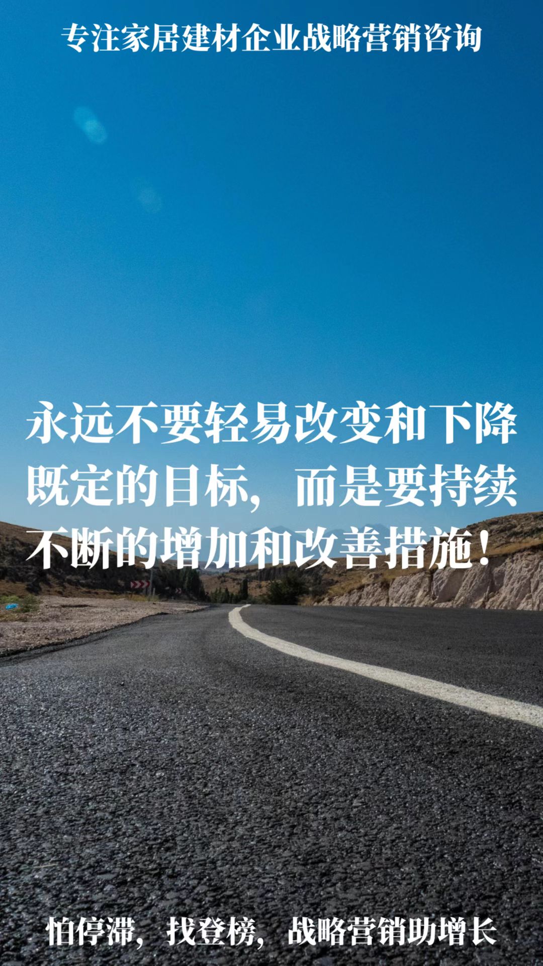 永遠(yuǎn)不要輕易改變和下降既定的目標(biāo),而是要持續(xù)不斷的增加和改善措施!
