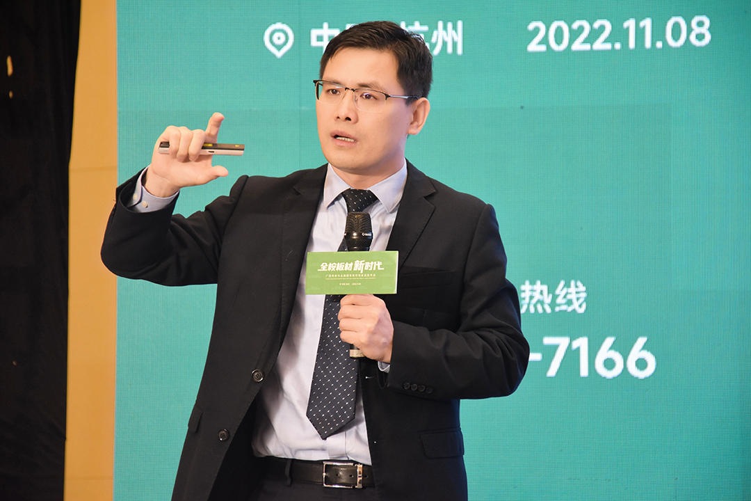 偉新木業(yè)集團(tuán)市場總監(jiān)唐東琛對偉新集團(tuán)品牌戰(zhàn)略規(guī)劃進(jìn)行解密。他從行業(yè)背景與環(huán)境分析、品牌推廣賦能、運(yùn)營管理賦能三個方面展開,以詳細(xì)的數(shù)據(jù)說明當(dāng)前房地產(chǎn)市場低迷,板材直接需求下降,行業(yè)加速洗牌。在這樣的狀況下,唐東琛總監(jiān)認(rèn)為下行市場破局三大戰(zhàn)略是產(chǎn)品提升戰(zhàn)略、品牌構(gòu)建戰(zhàn)略、運(yùn)營管理戰(zhàn)略。品牌打造的核心就是品牌與產(chǎn)品內(nèi)核的極致展現(xiàn)、線上線下多方渠道的宣傳策略以及終端銷售的升級與完善。