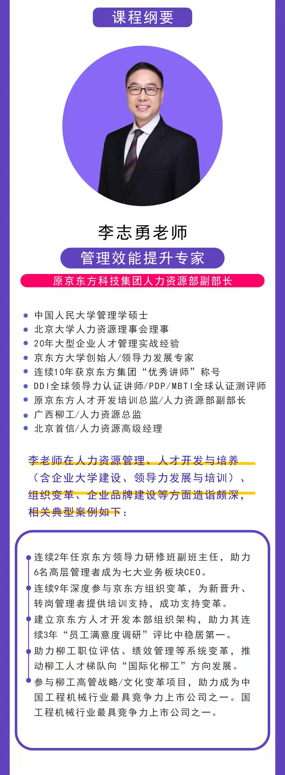 中國人民大學(xué)管理學(xué)碩士,北京大學(xué)人力資源理事會理事20年大型企業(yè)人オ管理實戰(zhàn)經(jīng)驗京東方大學(xué)創(chuàng)始人/領(lǐng)導(dǎo)力發(fā)展專家