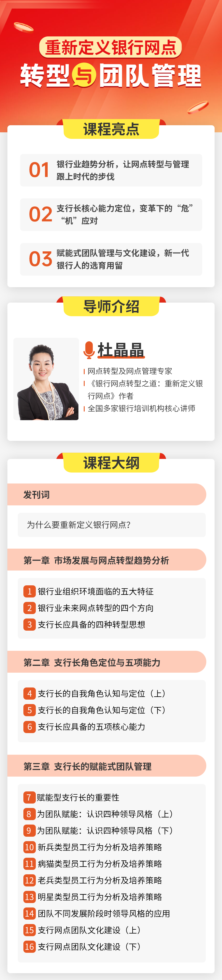 ●杜晶晶 網(wǎng)點轉(zhuǎn)型及網(wǎng)點管理專家 《銀行網(wǎng)點轉(zhuǎn)型之道:重新定義銀行網(wǎng)點》作者 全國多家銀行培訓機構核心講師