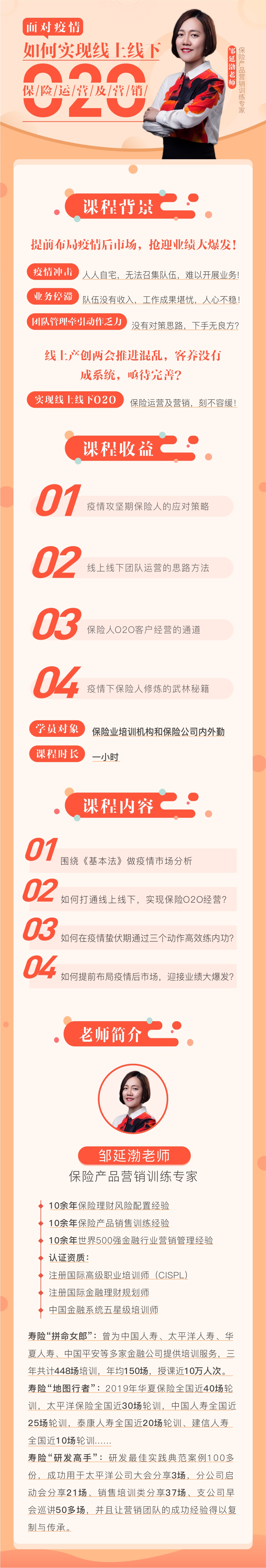 面對疫情,如何實現(xiàn)線上線下O2O保險運營及營銷(精品線上課程