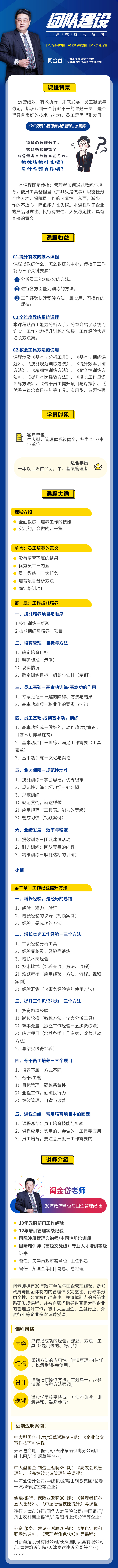 閻老師擁有30年政府單位與國(guó)企管理經(jīng)驗(yàn),悉知政府與國(guó)企體制內(nèi)的管理體系完整性、行政事務(wù)周全性、公文寫(xiě)作嚴(yán)謹(jǐn)性、并將體制內(nèi)的系統(tǒng)體系研發(fā)成課程,并親自顧問(wèn)指導(dǎo)數(shù)百家大型企業(yè)的管理提升工作,被中大型國(guó)企、金融行業(yè)、外資行業(yè)等企業(yè)多次返聘授課。