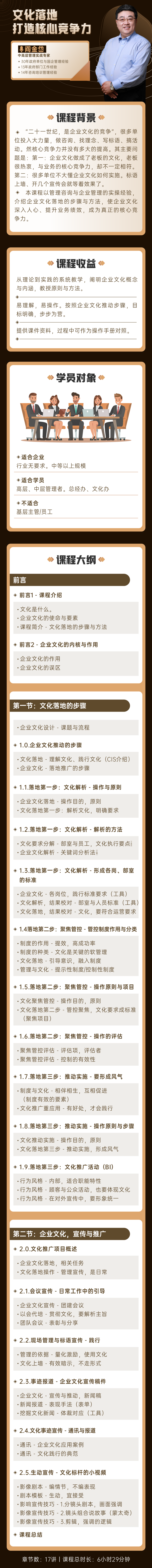 ◆ 本課程以管理咨詢與企業(yè)管理的實操經(jīng)驗,介紹企業(yè)文化落地的步驟與方法,使企業(yè)文化深入人心、提升業(yè)務(wù)績效,成為真正的核心競爭力。