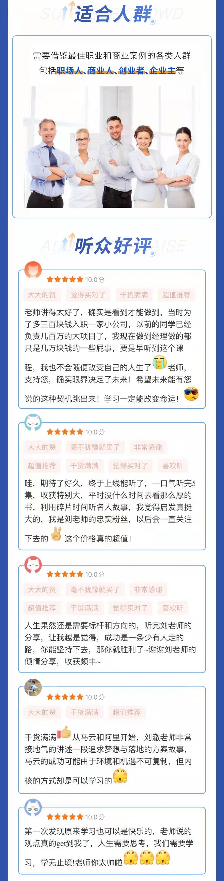 需要借鑒最佳職業(yè)和商業(yè)案例的各類人群包括職場人、商業(yè)人、創(chuàng)業(yè)者、企業(yè)主等