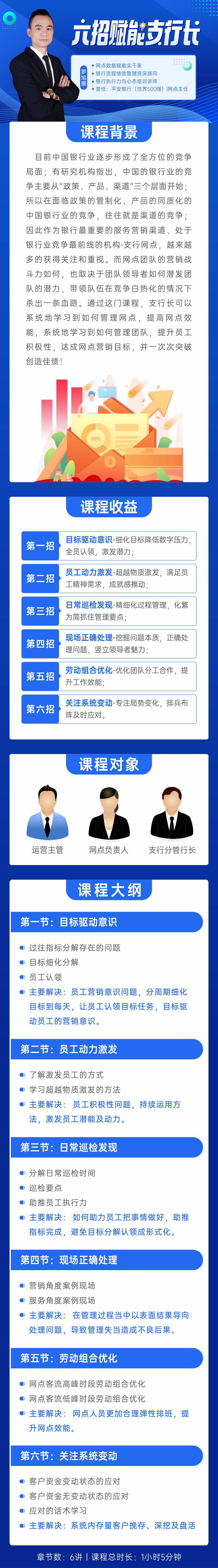 目前中國銀行業(yè)逐步形成了全方位的競爭局面;有研究機(jī)構(gòu)指出,中國的銀行業(yè)的競爭主要從“政策、產(chǎn)品、渠道”三個(gè)層面開始;所以在面臨政策的管制化、產(chǎn)品的同質(zhì)化的中國銀行業(yè)的競爭,往往就是渠道的競爭;因此作為銀行最重要的服務(wù)營銷渠道、處于銀行業(yè)競爭最前線的機(jī)構(gòu)-支行網(wǎng)點(diǎn),越來越多的獲得關(guān)注和重視。而網(wǎng)點(diǎn)團(tuán)隊(duì)的營銷戰(zhàn)斗力如何,也取決于團(tuán)隊(duì)領(lǐng)導(dǎo)者如何潛發(fā)團(tuán)隊(duì)的潛力,帶領(lǐng)隊(duì)伍在競爭白熱化的情況下殺出一條血路。通過這門課程,支行長可以系統(tǒng)地學(xué)習(xí)到如何管理網(wǎng)點(diǎn),提高網(wǎng)點(diǎn)效能,系統(tǒng)地學(xué)習(xí)到如何管理團(tuán)隊(duì),提升員工積極性,達(dá)成網(wǎng)點(diǎn)營銷目標(biāo),并一次次突破創(chuàng)造佳績!