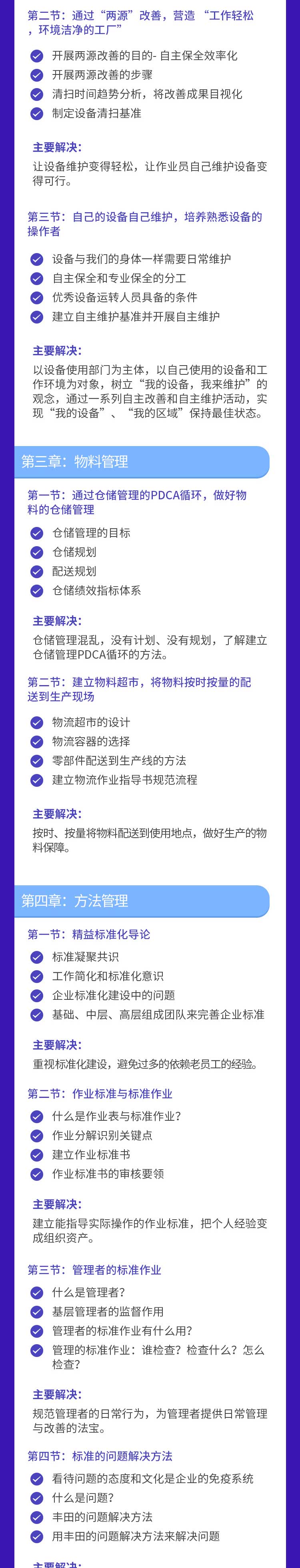 應(yīng)知應(yīng)會(huì)與多能工、四會(huì)基礎(chǔ)管理干部、人機(jī)評(píng)價(jià)識(shí)別艱難作業(yè);機(jī)器管理的最佳實(shí)踐兩源改善,自主維護(hù);物料管理的最佳實(shí)踐