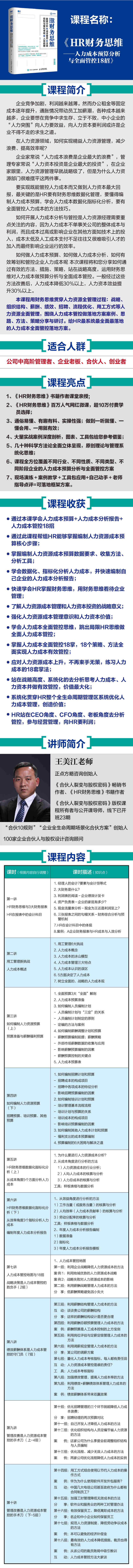 1.如何編制招聘計劃和預(yù)算- 招聘成本的構(gòu)成項目-招聘中各項成本的特征分析-影響招聘預(yù)算編制的因素2.如何編制培訓(xùn)計劃和預(yù)算- 培訓(xùn)管理基本流程流程- 培訓(xùn)計劃與預(yù)算的關(guān)系-培訓(xùn)成本的構(gòu)成項目-影響培訓(xùn)預(yù)算編制的因素3.如何編制其他人力成本計劃和預(yù)算-福利支出的成本預(yù)算編制4.預(yù)算編制的6大困局與解決之道