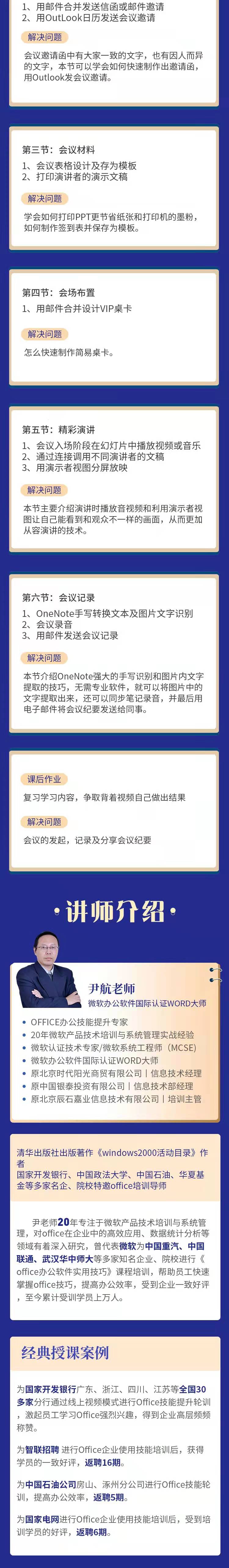 讓學員通過三個典型工作場景下,如何用 Office 辦公的學習,大大提升自己處理工作的效處理各種事物,通過典型的場景,和學員產(chǎn)生共鳴,讓他們發(fā)現(xiàn)學習的內容就是工作中遇到的問顆。這樣就右學習動力。課程就有了天然的吸引力。
