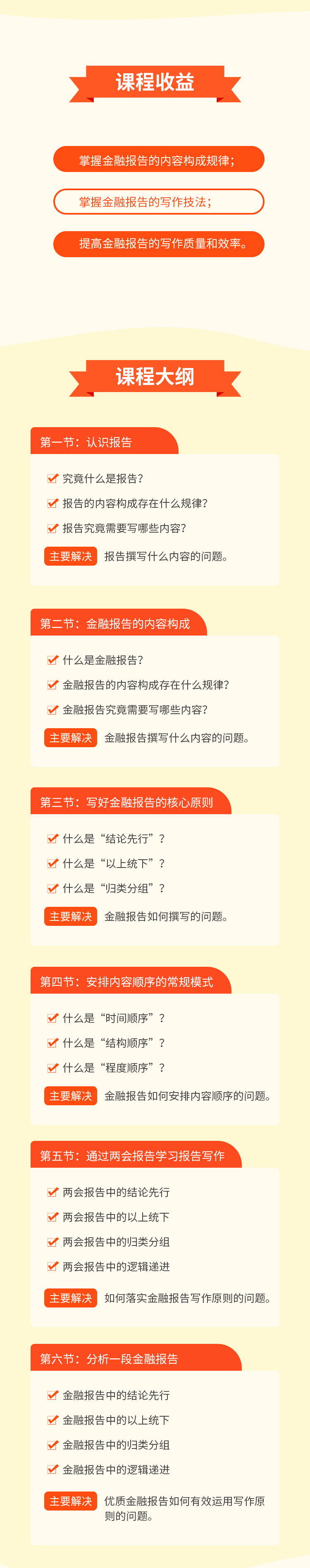 本課程結(jié)合工作當(dāng)中的現(xiàn)實(shí)場(chǎng)景,教你短平快地解決金融報(bào)告寫作問(wèn)題。