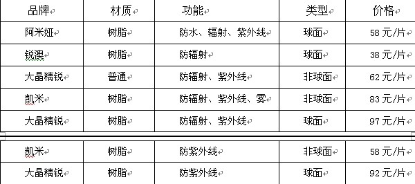 ②鏡片:阿米婭、銳澳、大晶精銳、凱米