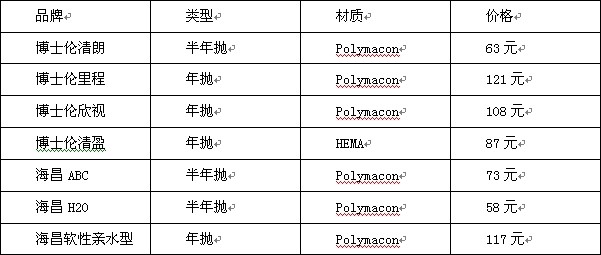①近視眼鏡:博士倫晴朗半年拋、博士倫里程年拋、博士倫欣視年拋、博士倫清盈年拋、海昌ABC半年拋、海昌H2O半年拋、海昌軟性親水型年拋