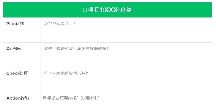 一般的復(fù)盤模板/工具會習慣去尋找初始設(shè)定目標和最終達成目標當中的差異,繼而分析形成差異的原因,從而提煉總結(jié)為經(jīng)驗。同時也考驗我們平常對個人和工作的積累,日常當中積累復(fù)盤的多了,到了年末做復(fù)盤總結(jié)一整年的時候就輕松和舒服多了,不會沒有頭緒。