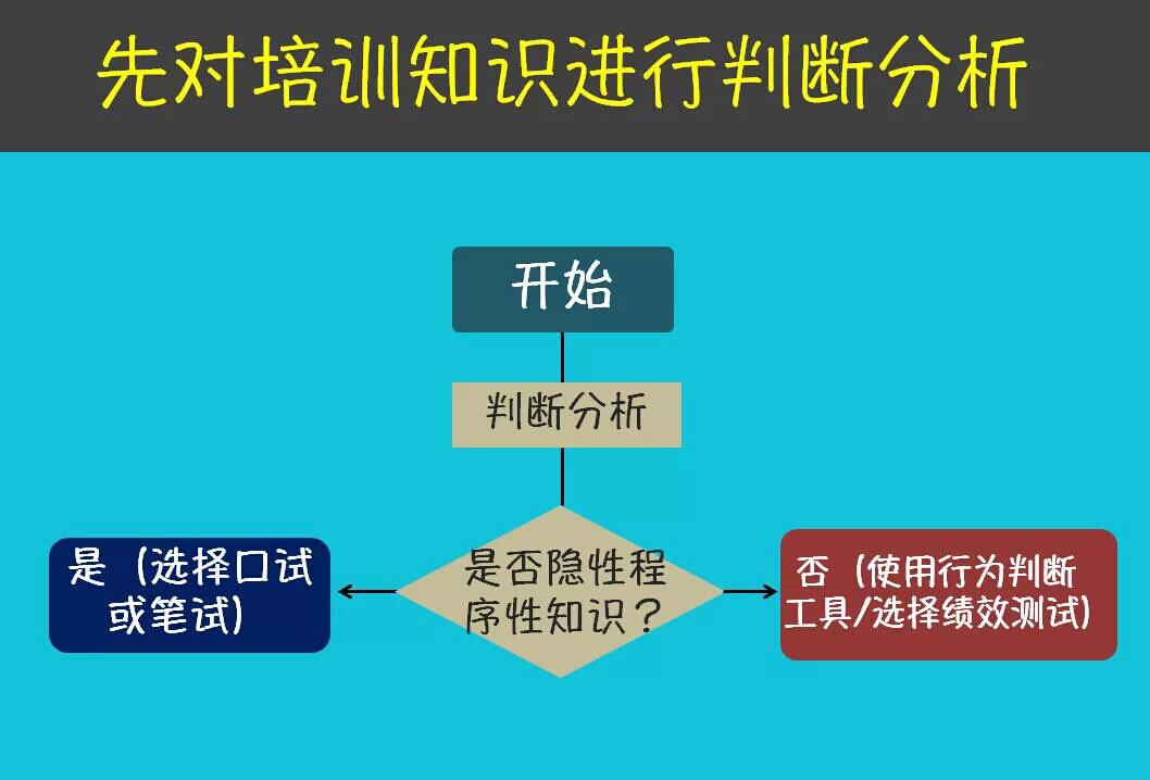 企業(yè)的管理者要了解此次培訓的目的,是否“隱性的程序性知識”還是“顯性的程序性知識”來選擇用什么方式來進行這個測試。