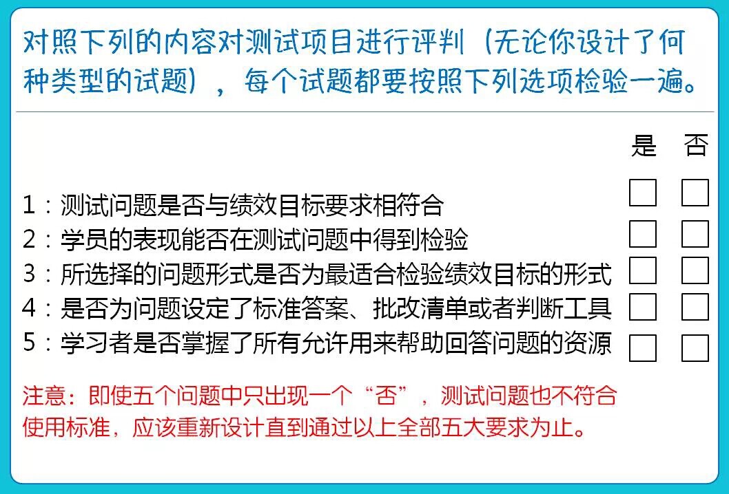 如何檢查測試題對于學員是否有效,能夠發(fā)揮實質作用,達到此次此時的目的。下圖舉例演示了測試項目檢驗的工具輔助。